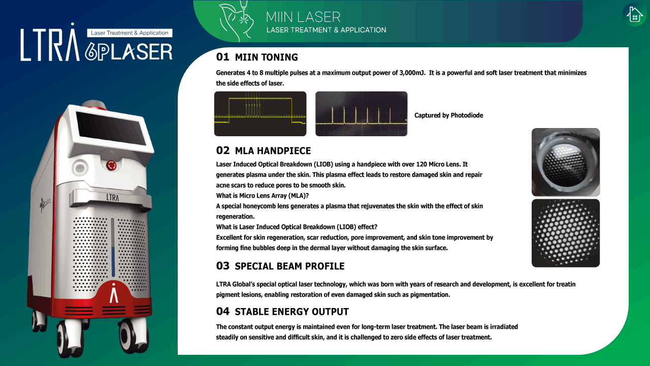 The first and only ND YAG laser with 6 pulses in nanosecond - Uniform Beam Profile - Excellent Durability - Low Maintenance Cost - User Friendly Interface